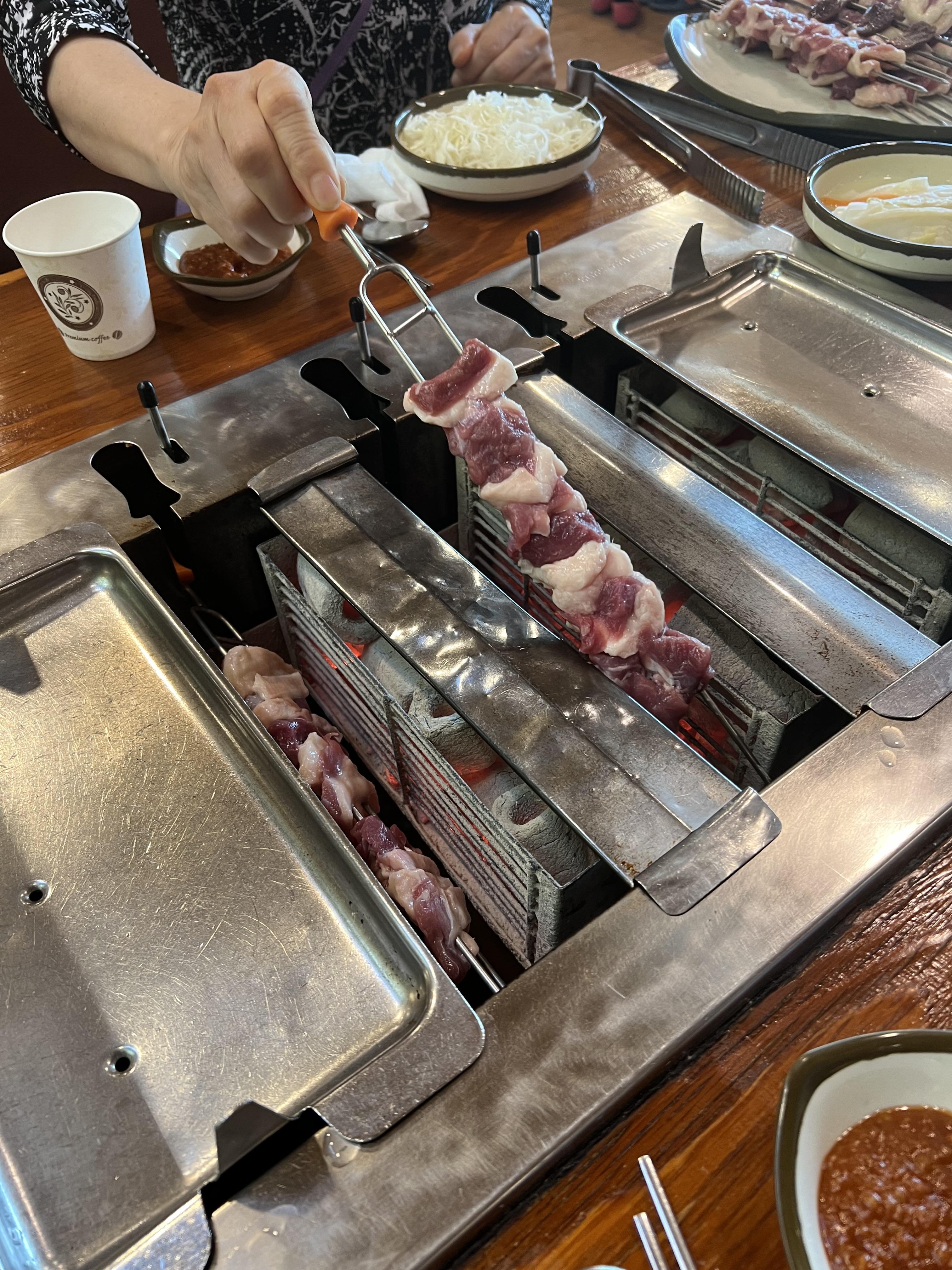 고기가 어느 정도 익으면 꺼내주셔서 틈에 맞춰서 고기를 쭈욱 빼주세요! 저희는 처음에 갔을 때 힘들게 젓가락으로 빼니깐 직원분께서 이렇게 빼시는 거라고 알려주시더라고요ㅋㅋ