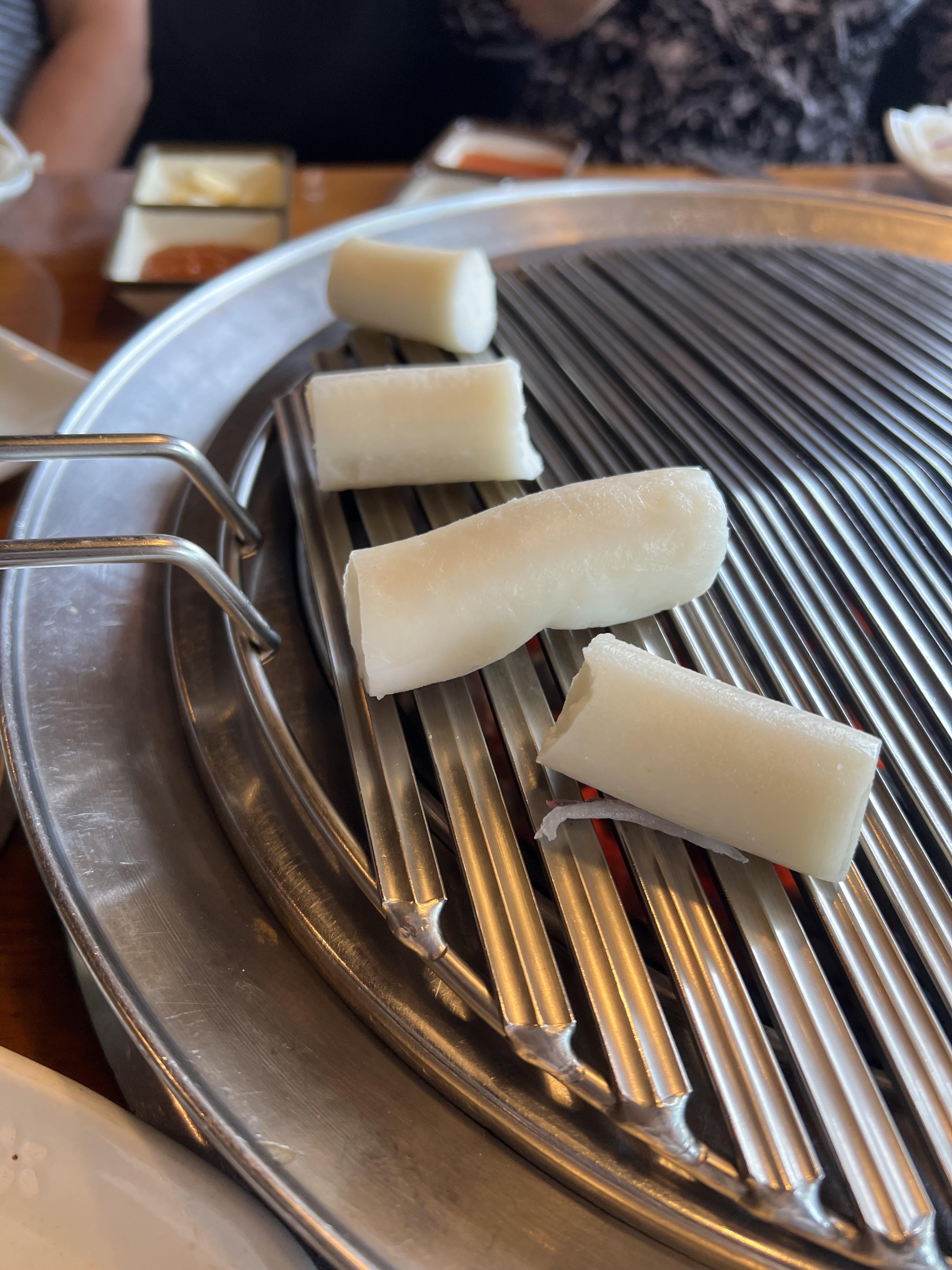 그리고 고기와 함께 구워 먹을 수 있는 떡도 나옵니다.