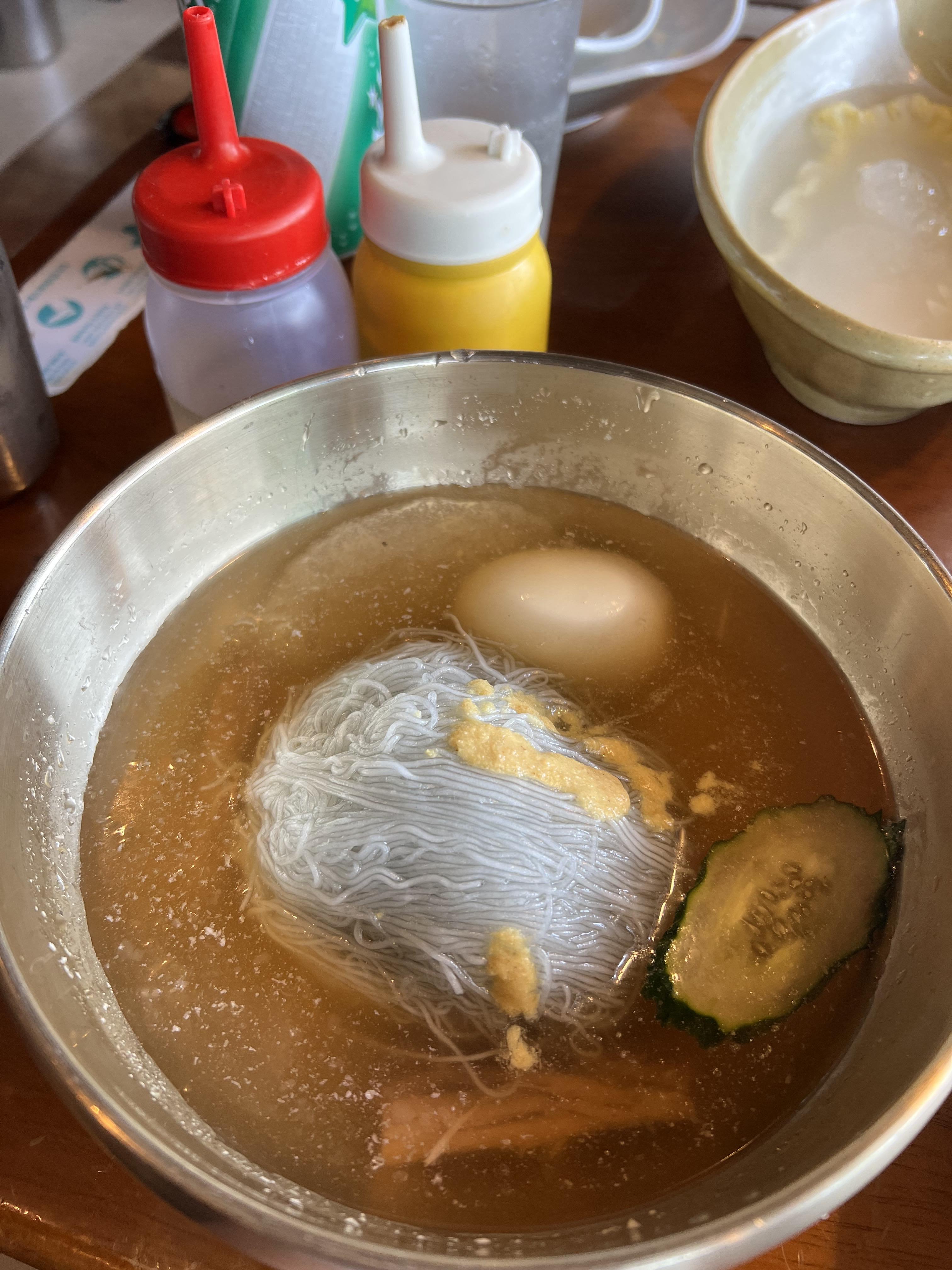 후식 물냉면으로 주문했고 가격은 6천원이었던 것 같아요.
