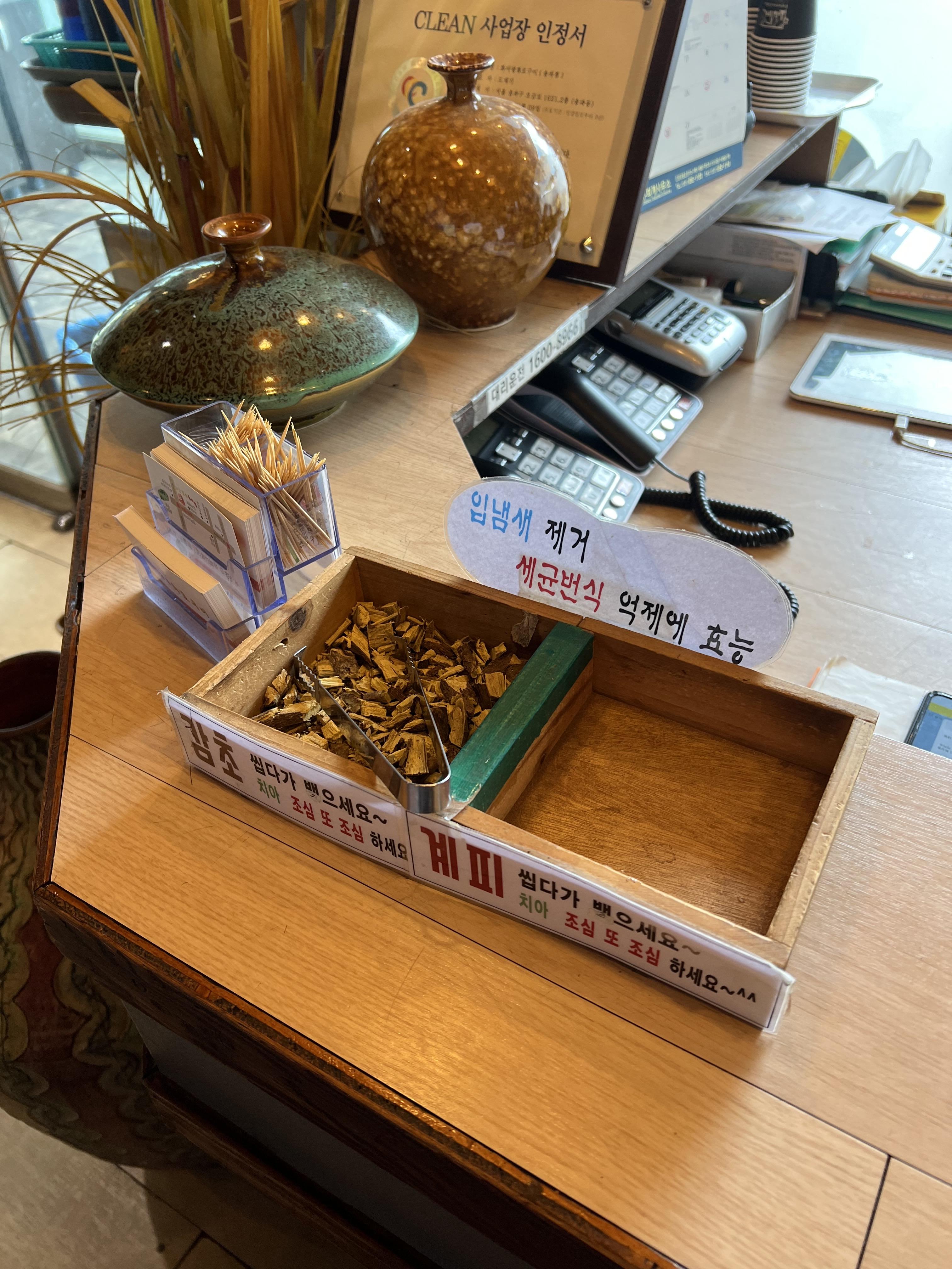 계산대 옆에 감초랑 계피 나무!? 같은 게 있는데 호기심에 한번 씹어봤다가 바로 뱉었습니다..^^