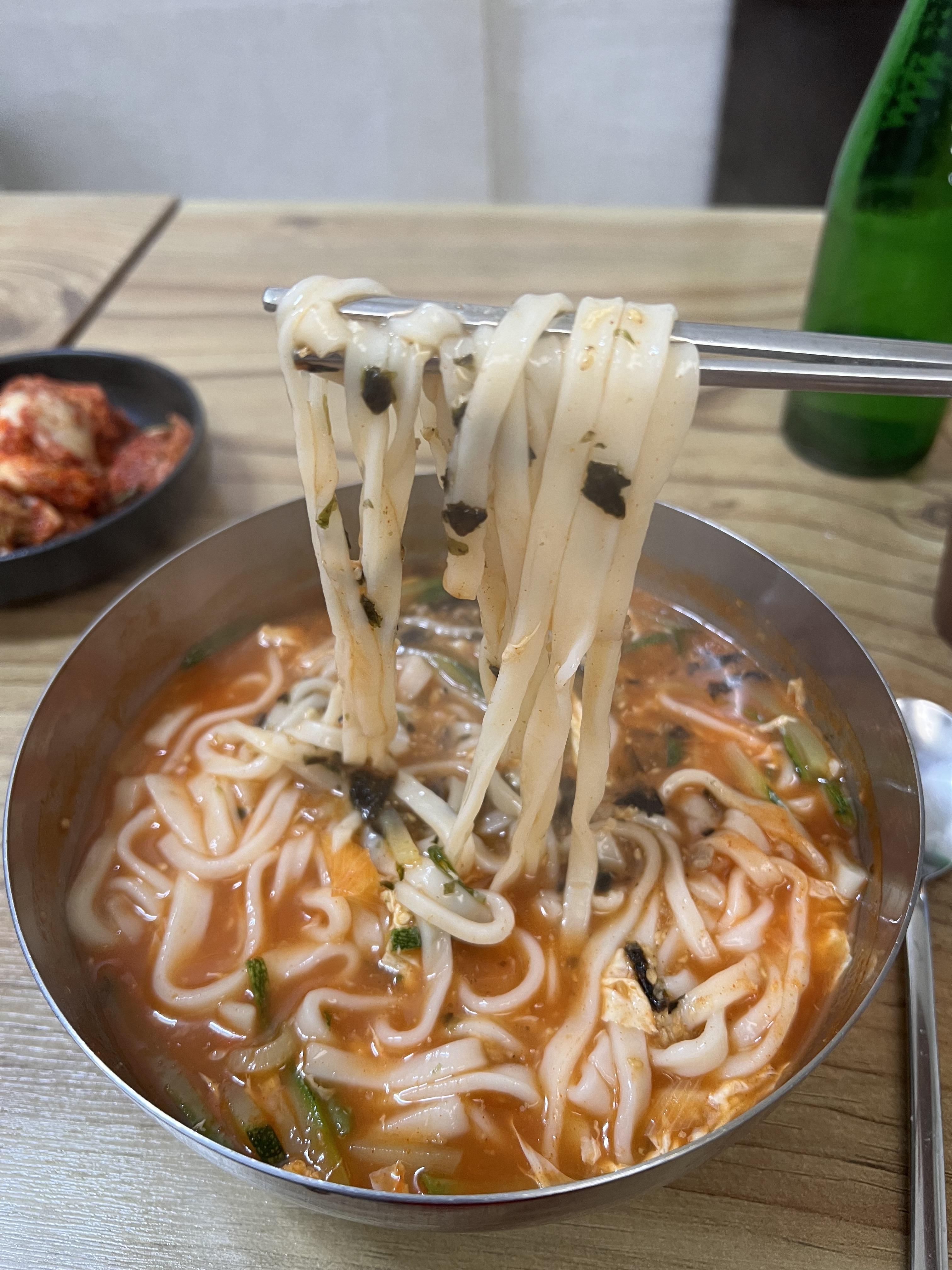 맛은 약간 매콤하면서 깊은 맛이 나는 장칼국수였답니다.