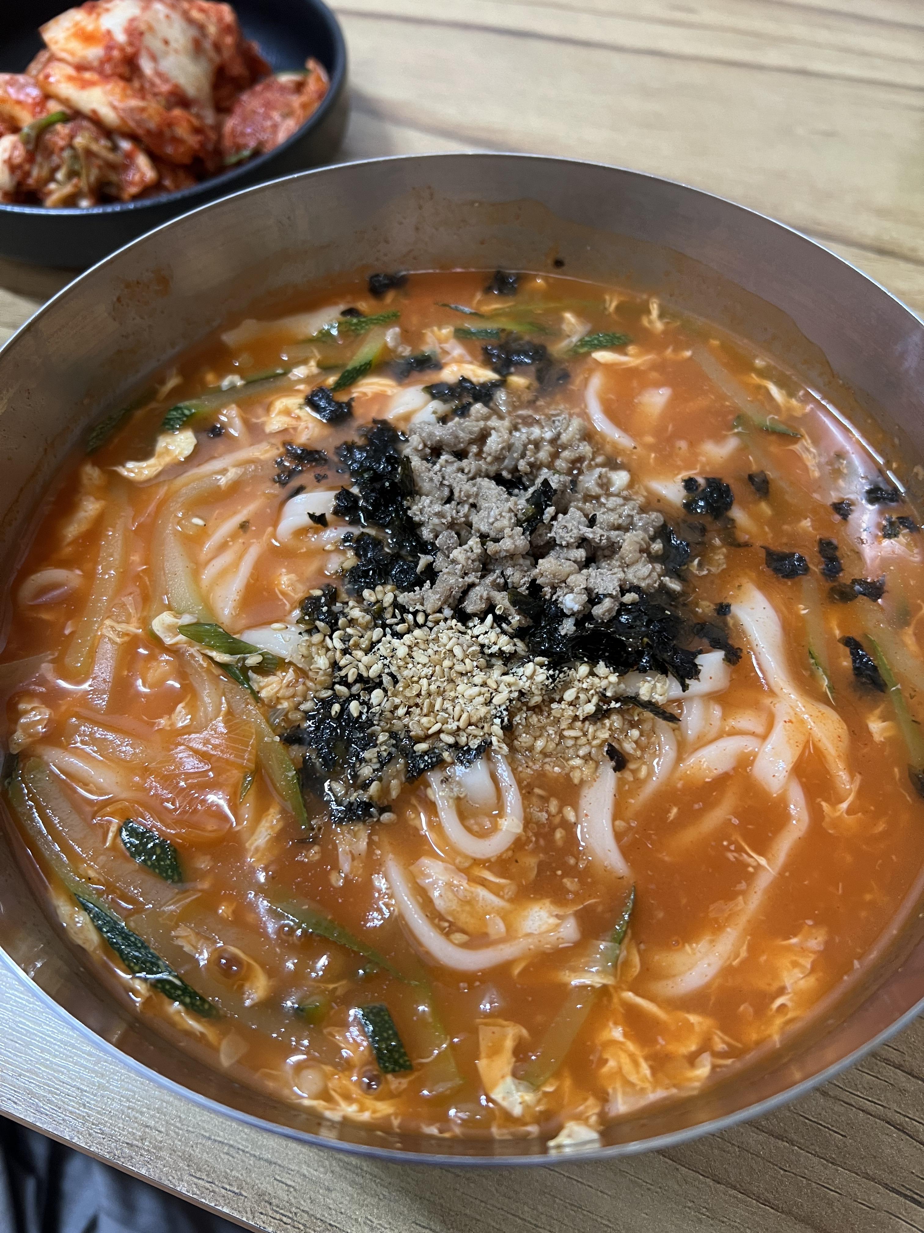 맛은 약간 매콤하면서 깊은 맛이 나는 장칼국수였답니다.