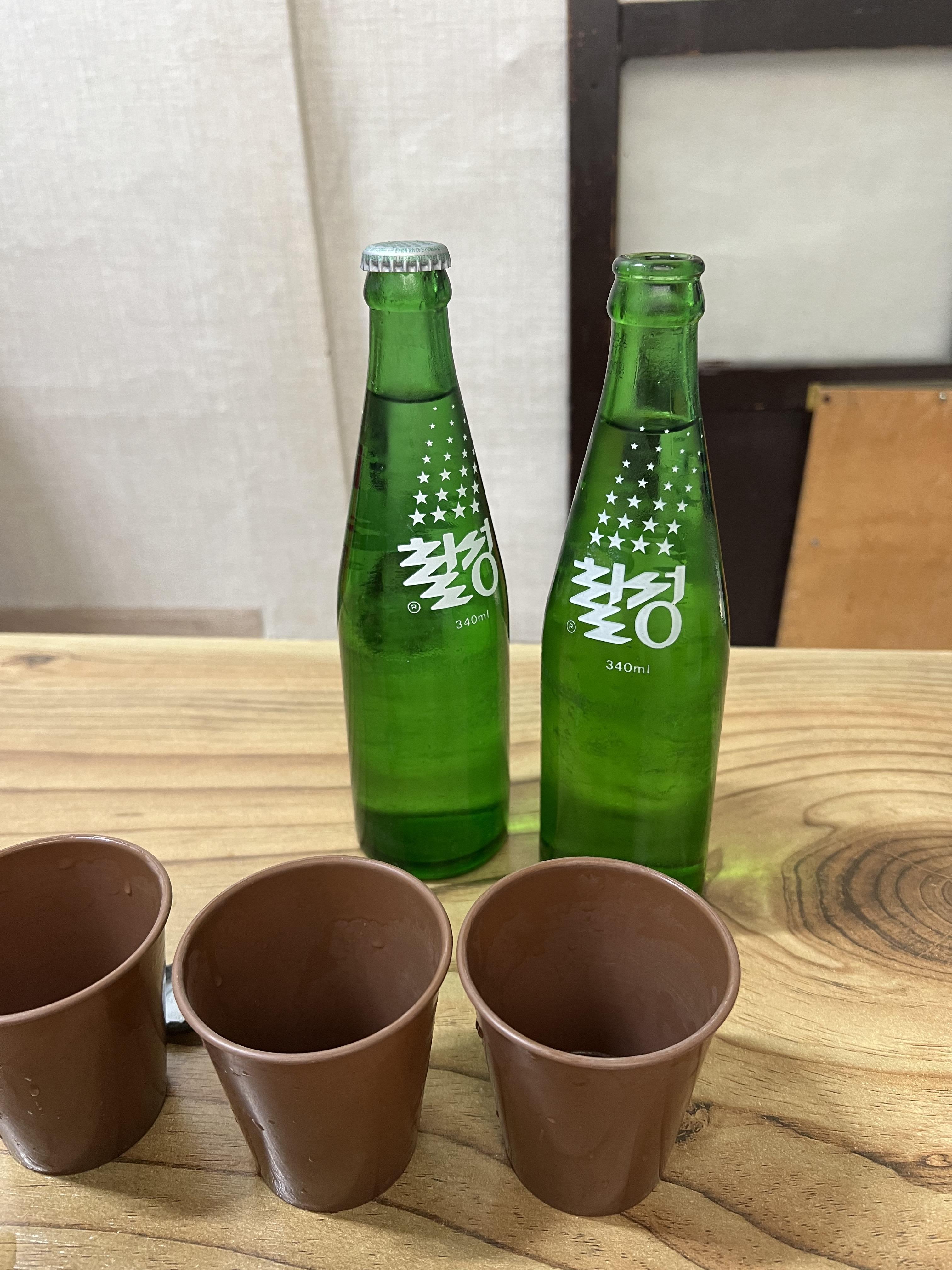 음료는 콜라를 주문했지만 콜라가 없다고 하셔서 사이다로 주문했고 저렇게 병으로 나온답니다.