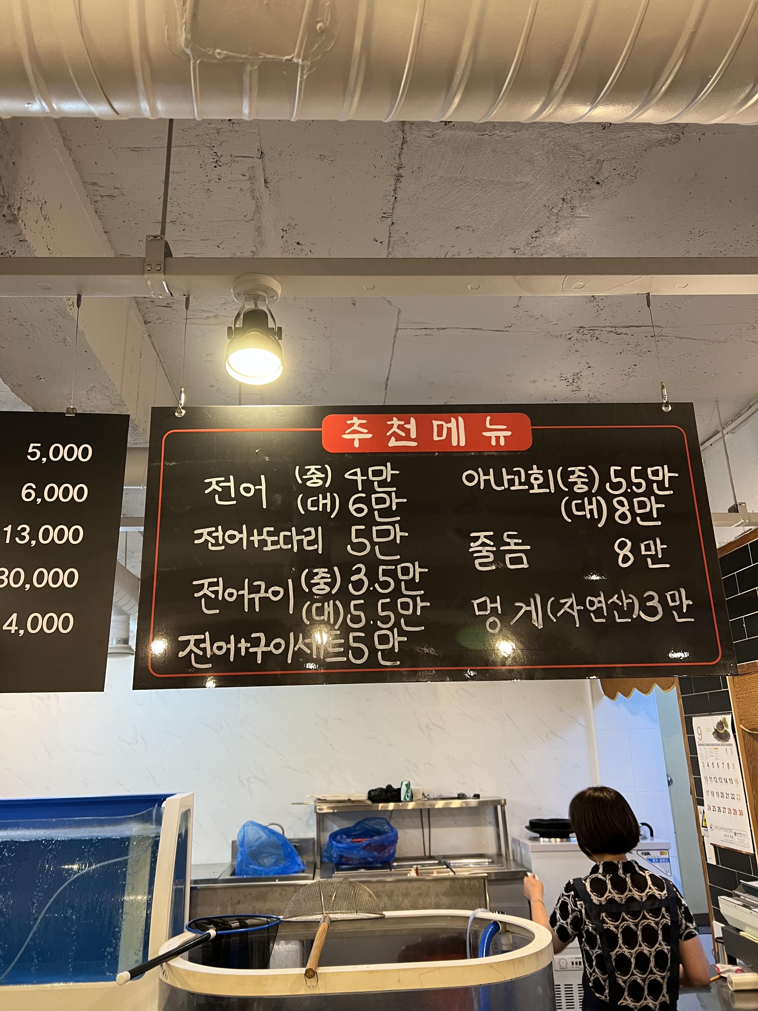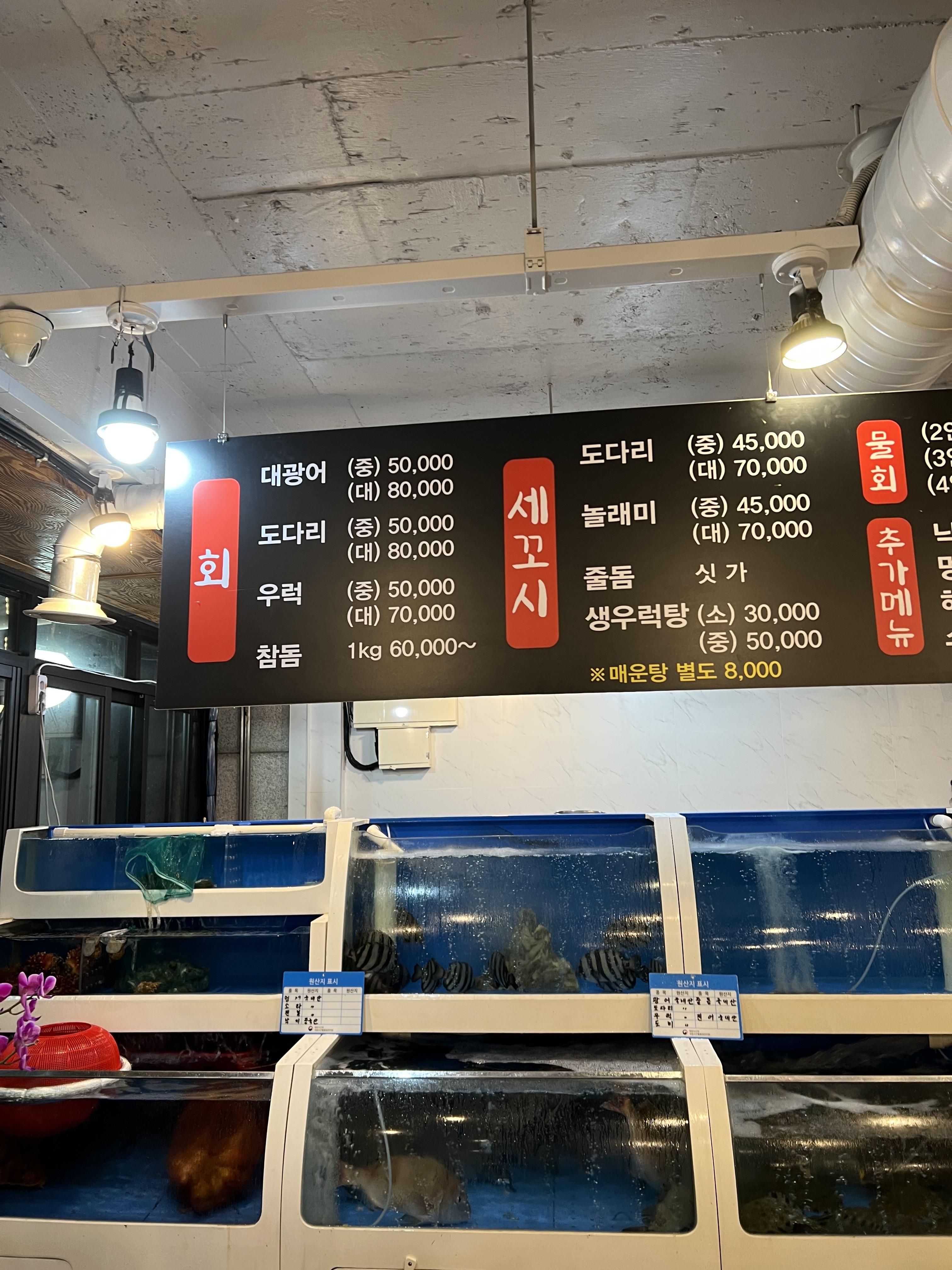가게 내부는 생각보다는 넓었고 들어서자마자 메뉴판과 수족관이 눈에 띄었어요.