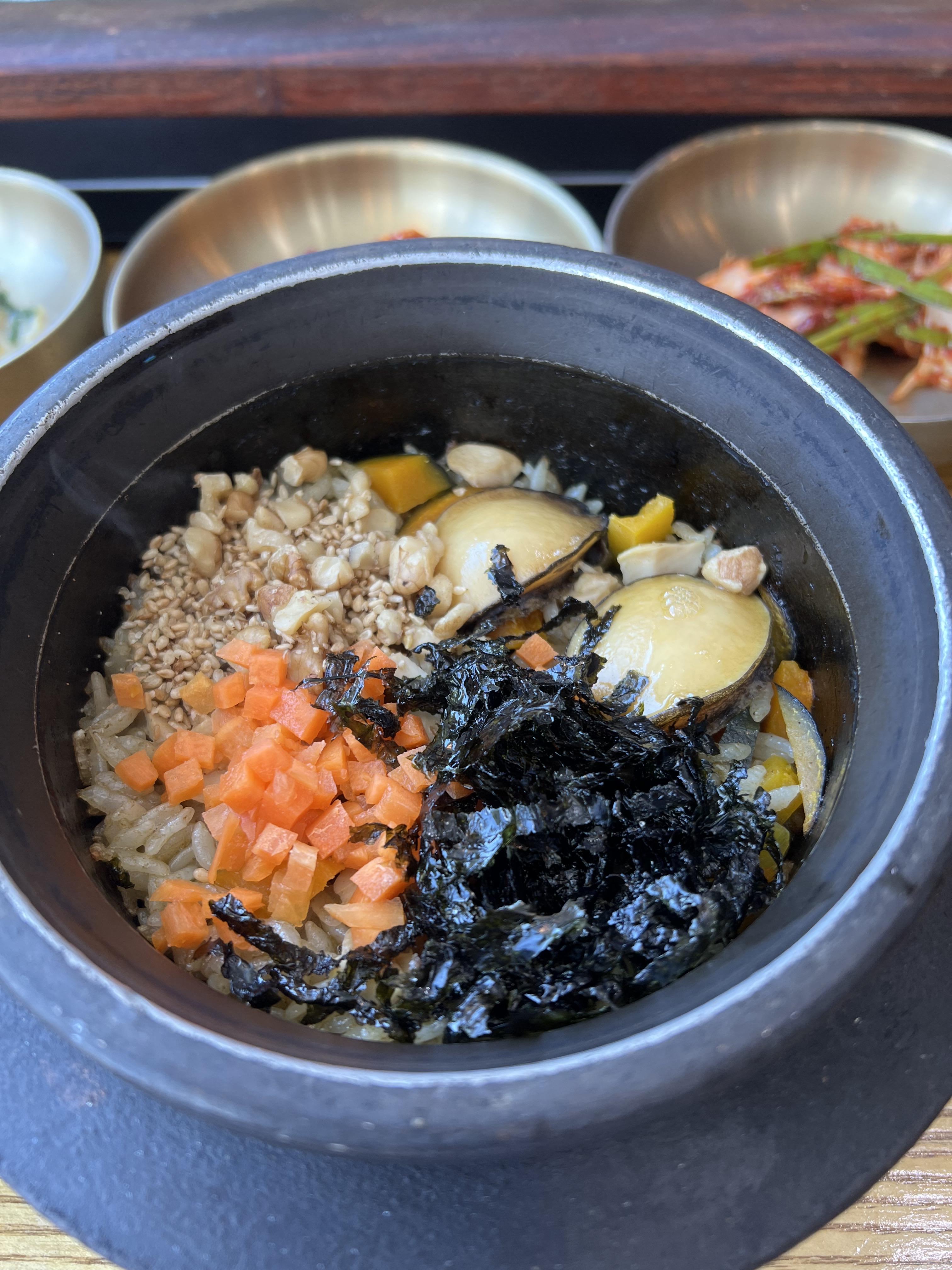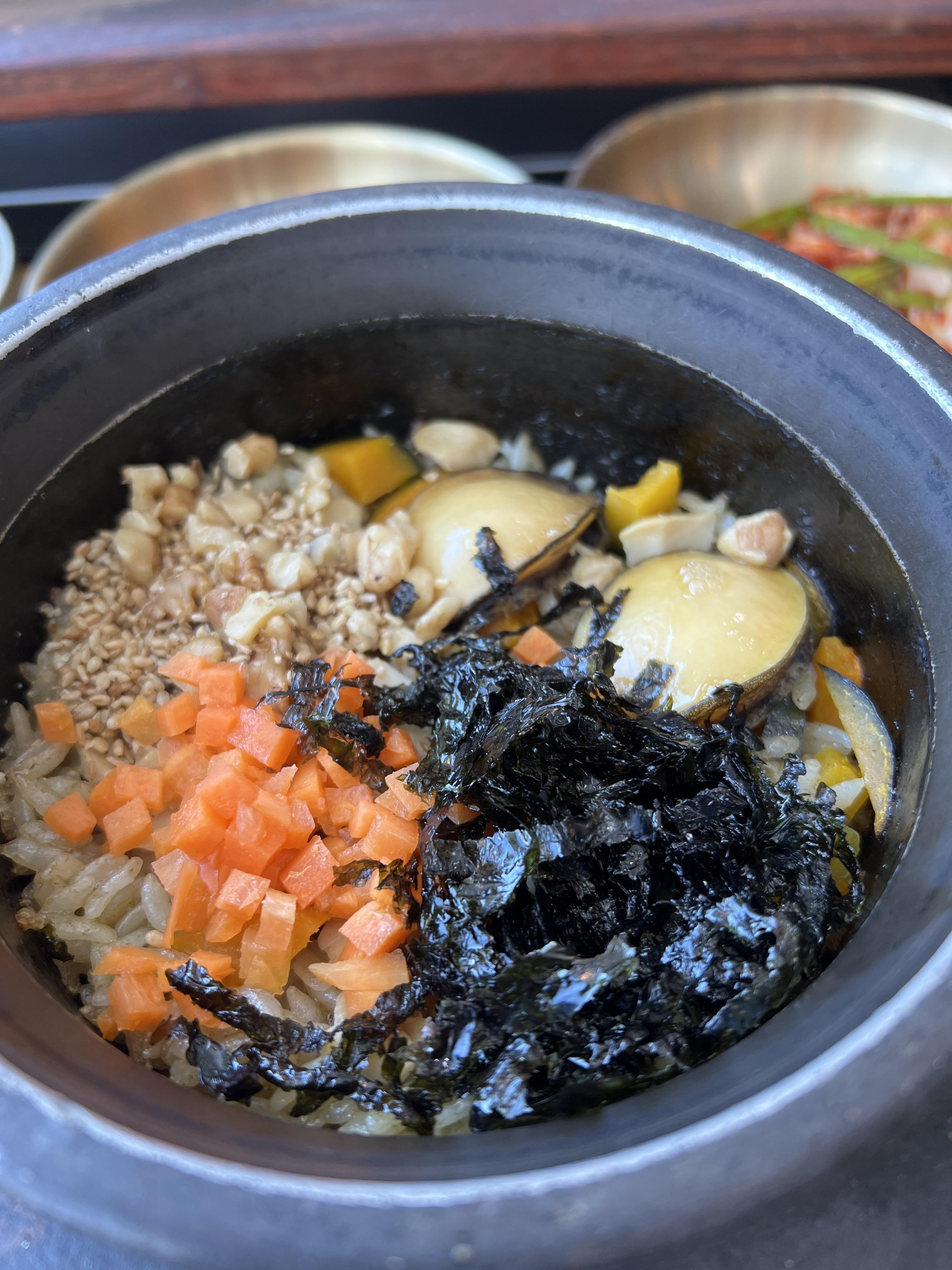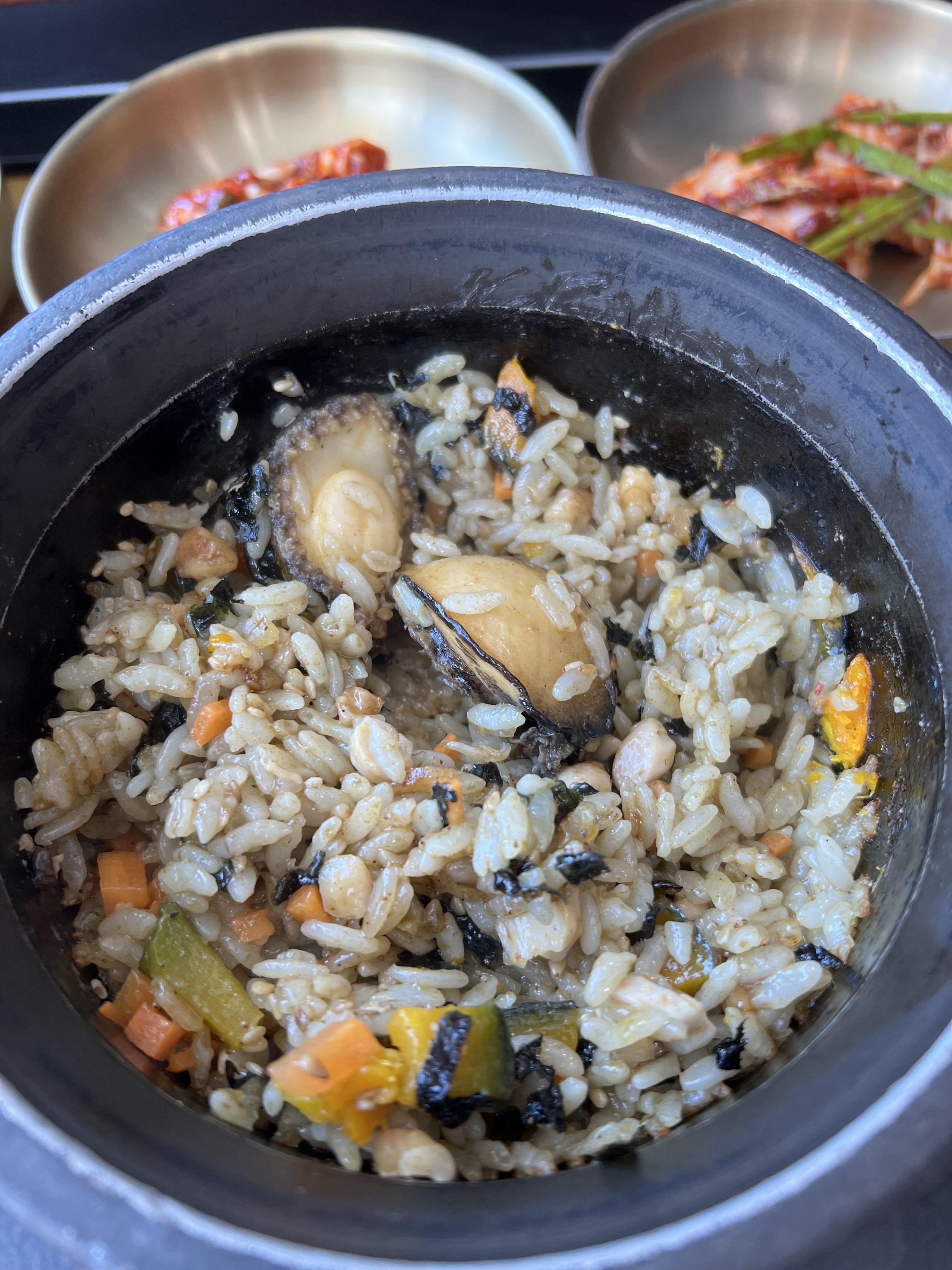 전복 돌솥밥에는 전복이 두 개나 들어가요!