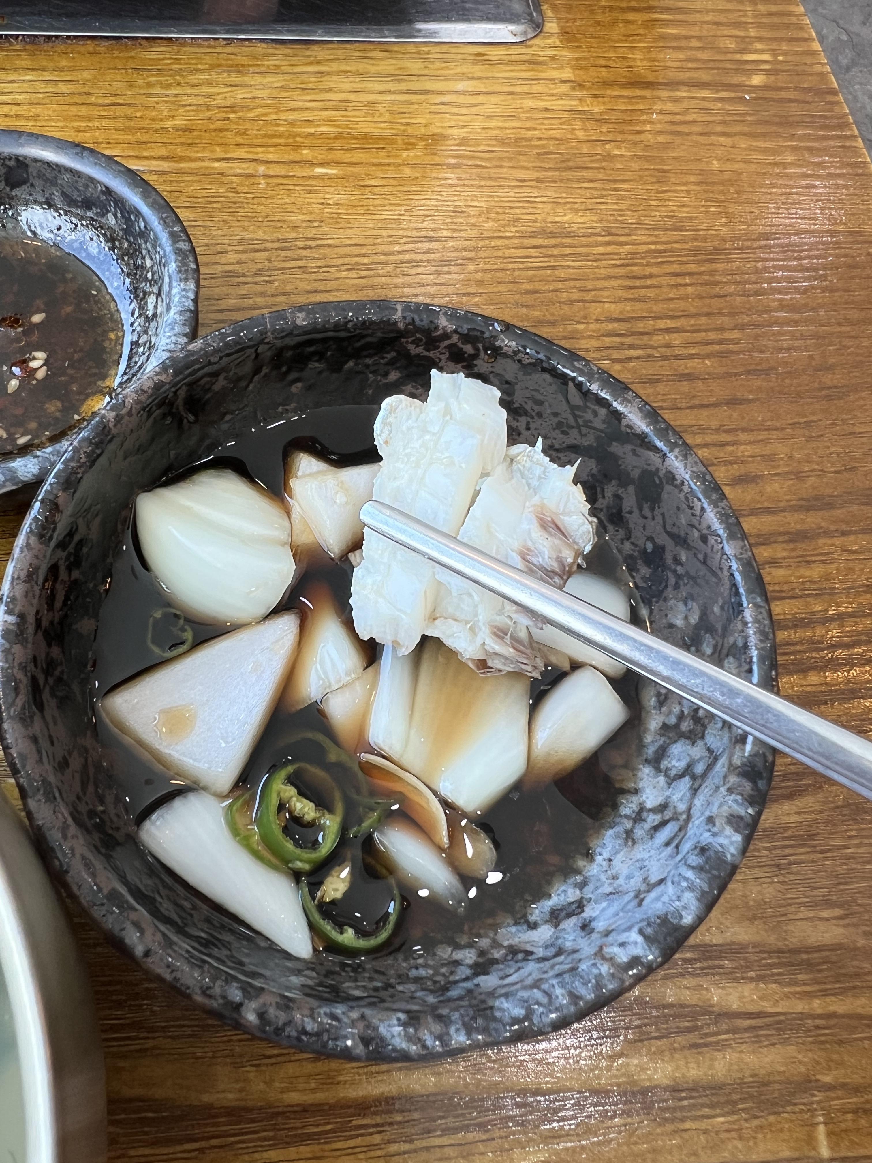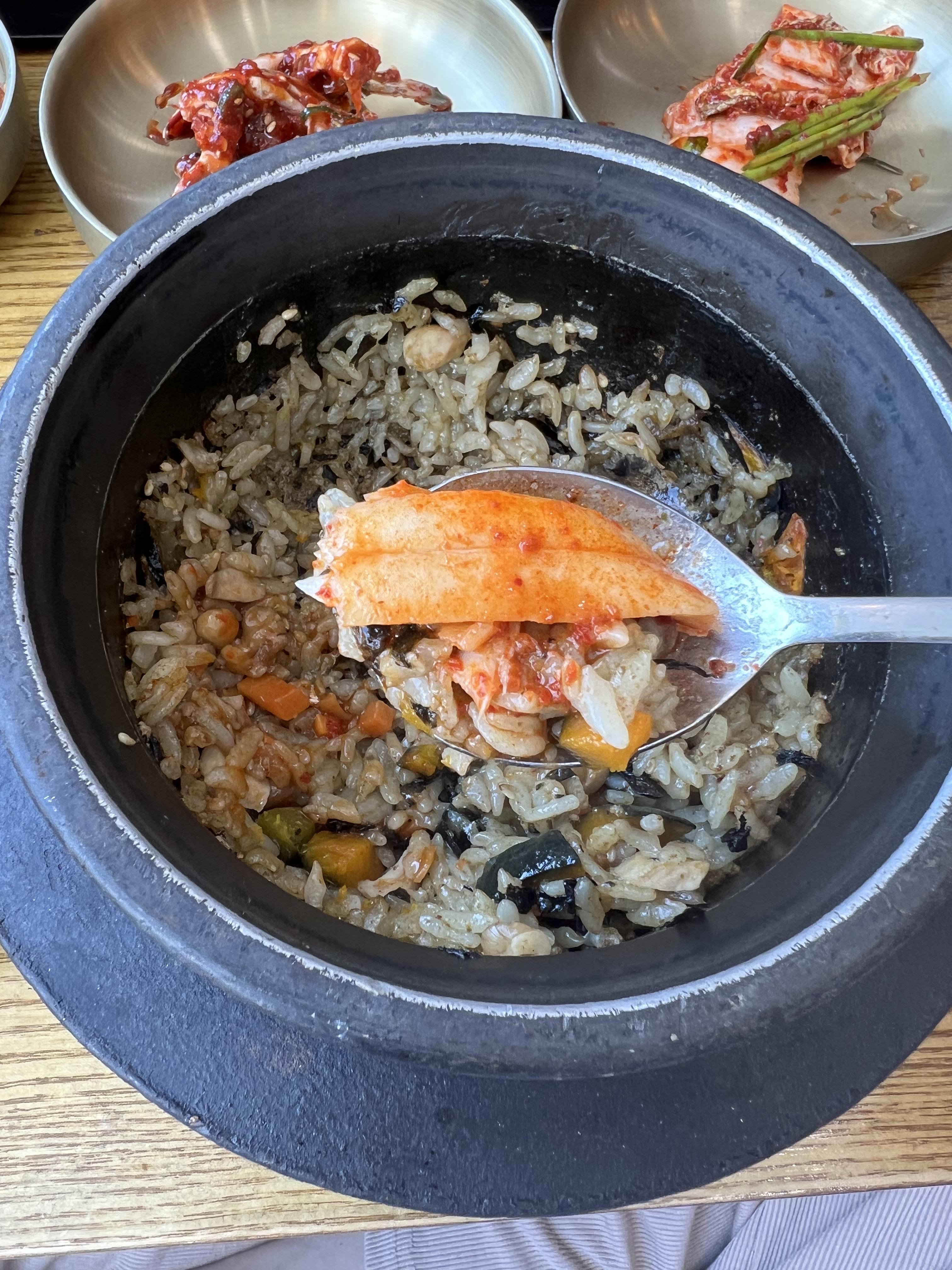 돌솥밥에 간장 양념 더해서 먹으라고 하셨는데 따로 간장 양념 안 넣어도 저한테는 간이 딱 알맞았어요.