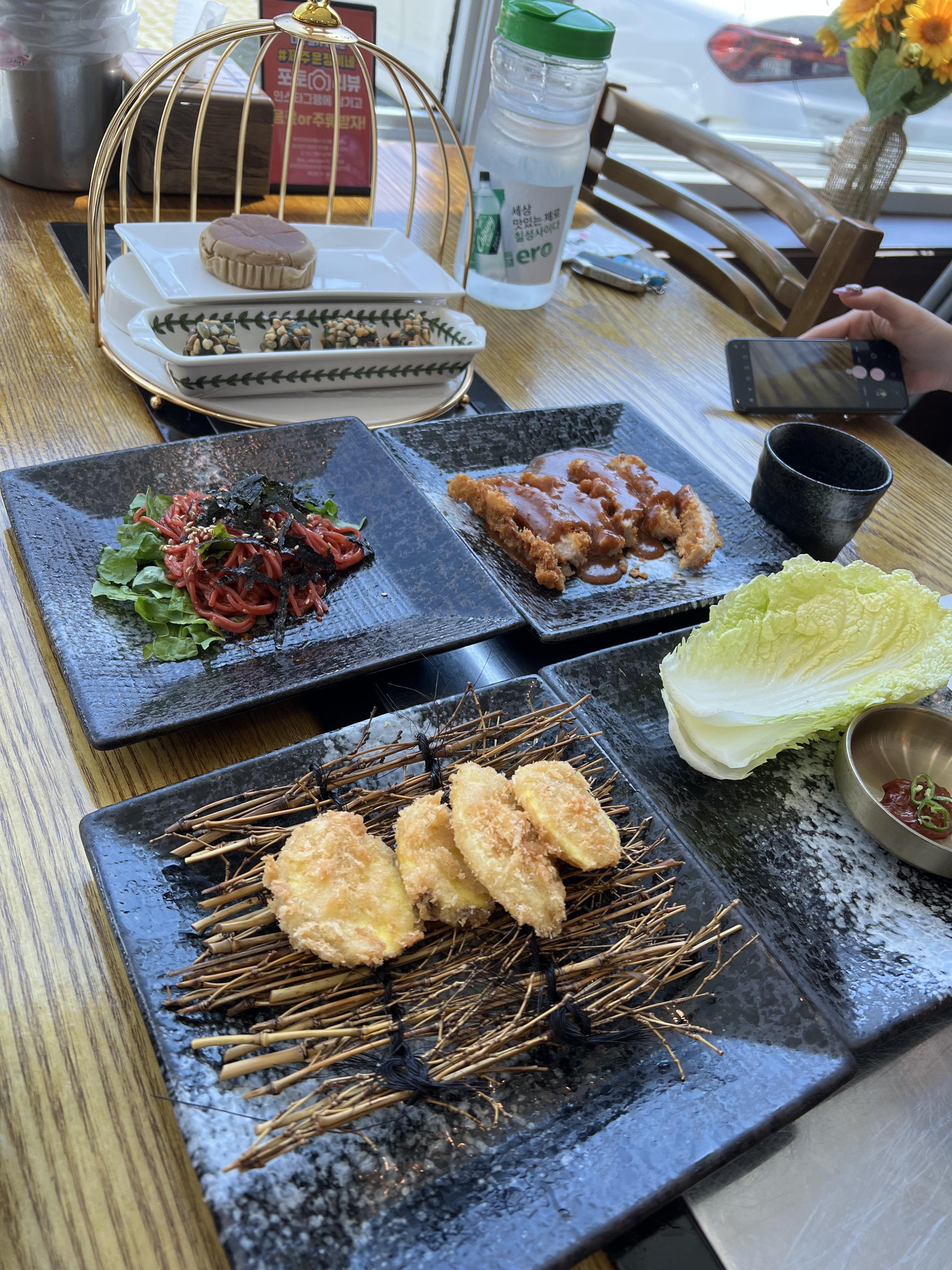 그 외로 돈까스랑 고구마전, 알배추에 젓갈도 나왔어요.