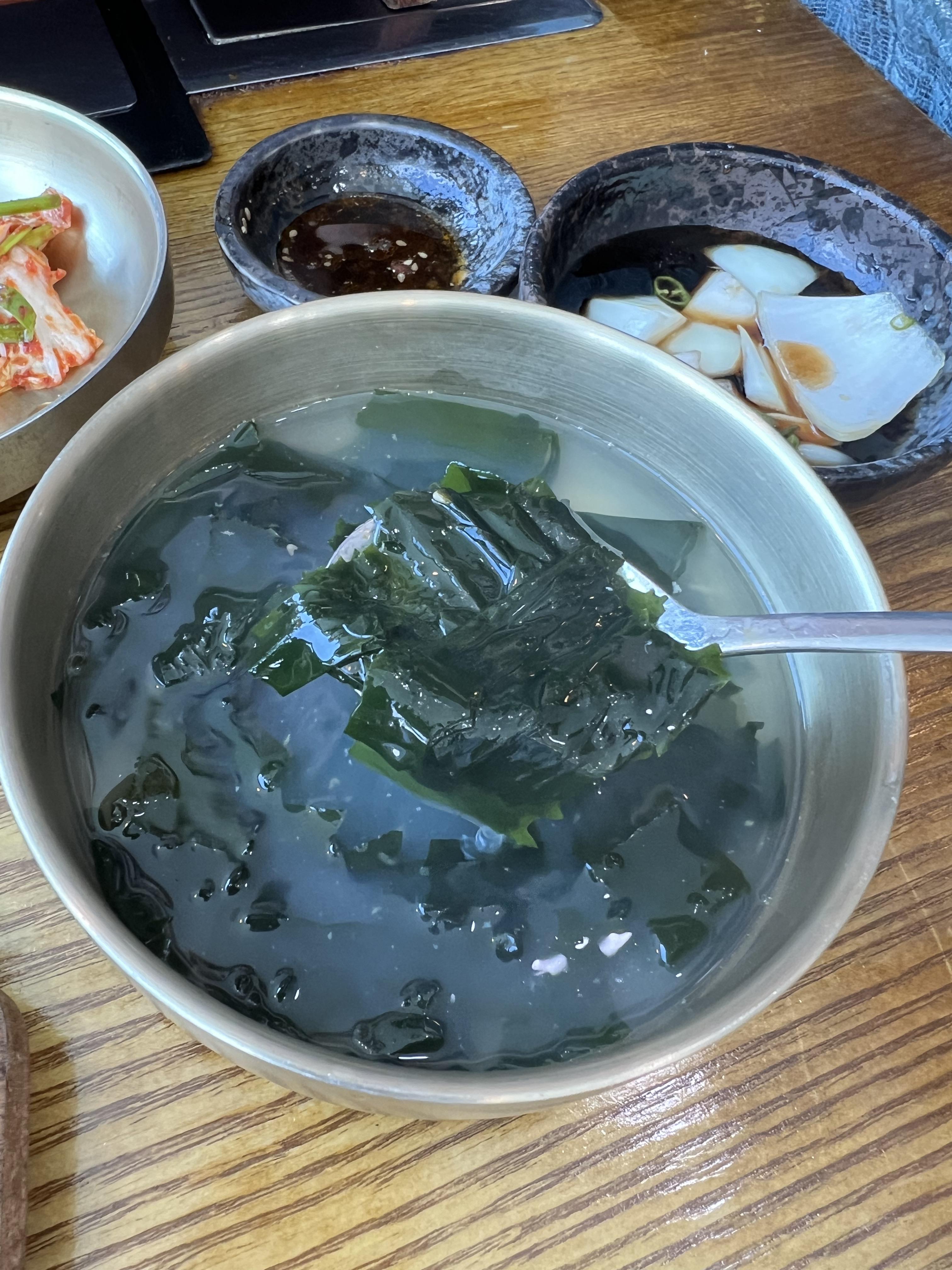 같이 나온 미역국은 별로 기대 안했는데 정말 깔끔하고 맛이 좋았습니다. 제 친구는 제주 여행 동안 먹은 미역국 중에 제일 맛있다고 했었습니다ㅋㅋㅋ 돌솥밥 맛은 말해뭐해요~~ 너무 맛있었어요.